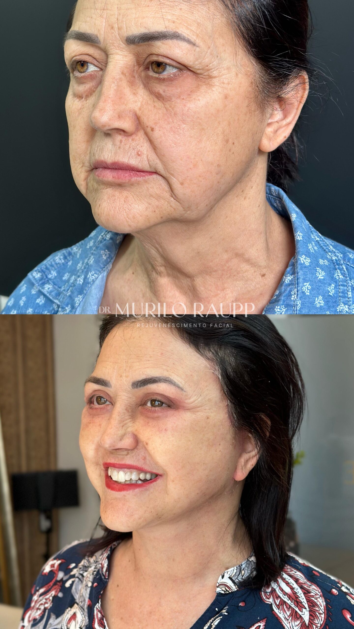 A medida que o tempo passa é comum perdermos o contorno facial, o que é conhecido como “derretimento”, acentuando características como: